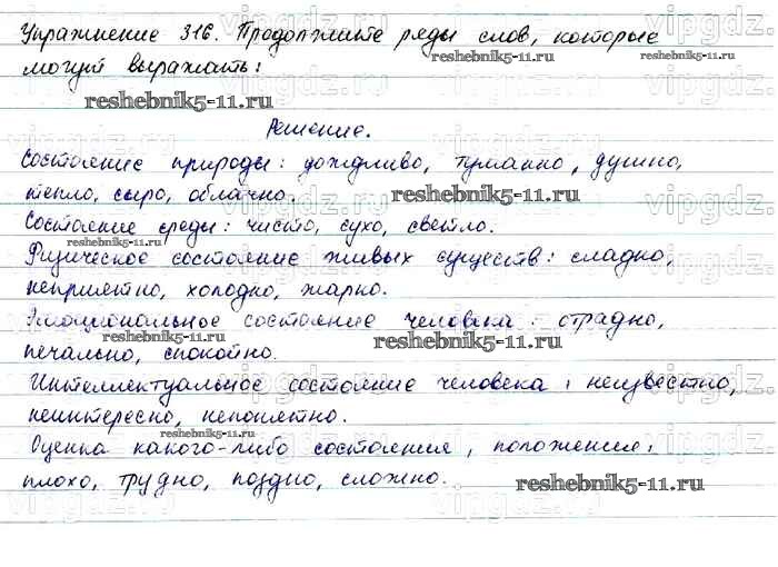 Готовая домашняя работа с ответами по Русскому языку за 7 класс Баранов, Ладыженская, Тростенцова Учебник УМК Просвещение 2015 ФГОС - Упражнения 316