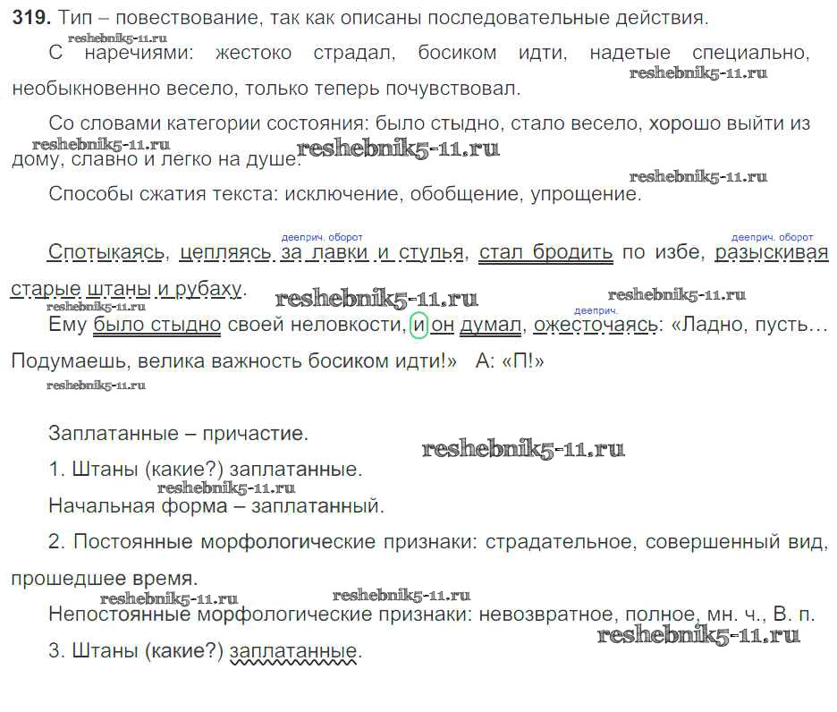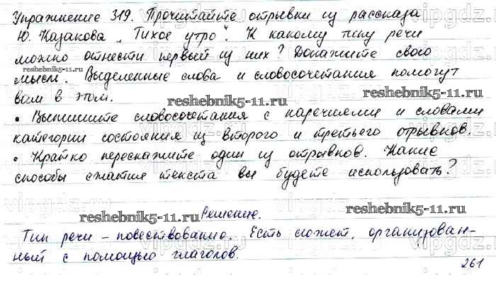 Готовая домашняя работа с ответами по Русскому языку за 7 класс Баранов, Ладыженская, Тростенцова Учебник УМК Просвещение 2015 ФГОС - Упражнения 319
