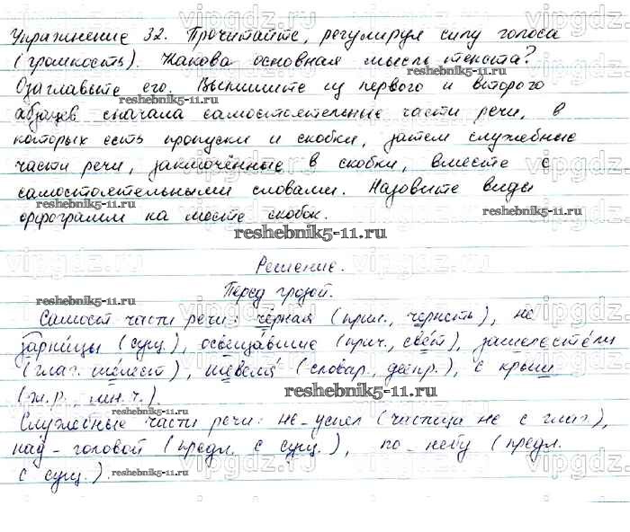 Готовая домашняя работа с ответами по Русскому языку за 7 класс Баранов, Ладыженская, Тростенцова Учебник УМК Просвещение 2015 ФГОС - Упражнения 32