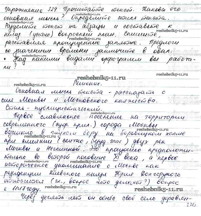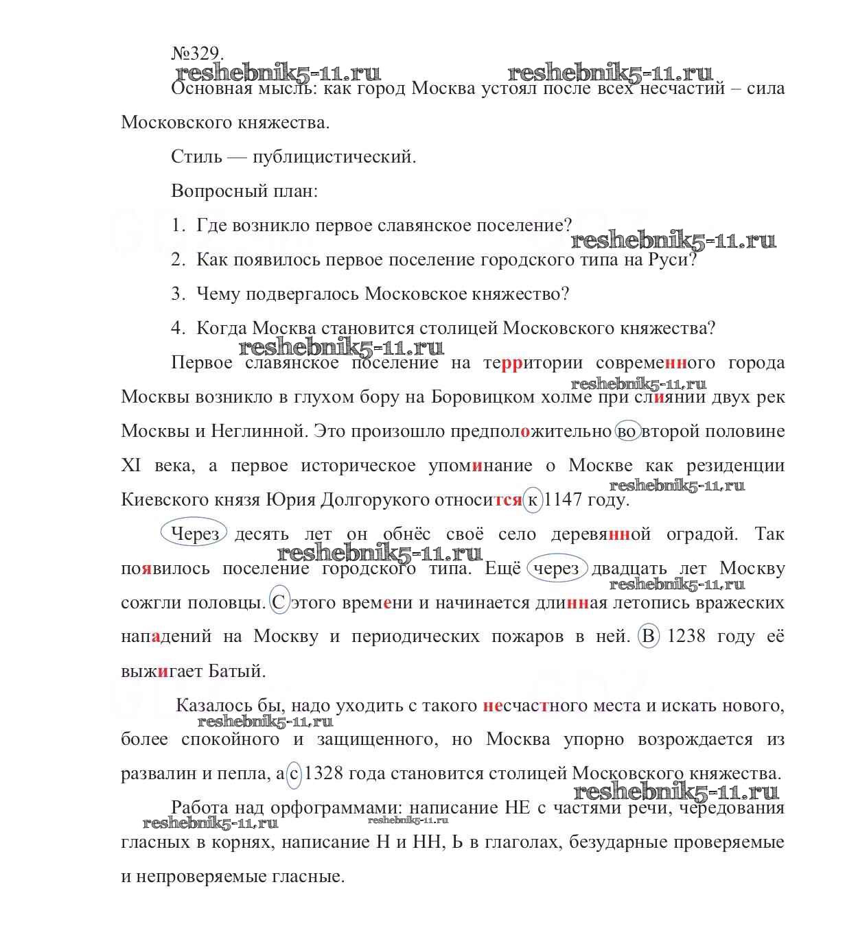 Готовая домашняя работа с ответами по Русскому языку за 7 класс Баранов, Ладыженская, Тростенцова Учебник УМК Просвещение 2015 ФГОС - Упражнения 329