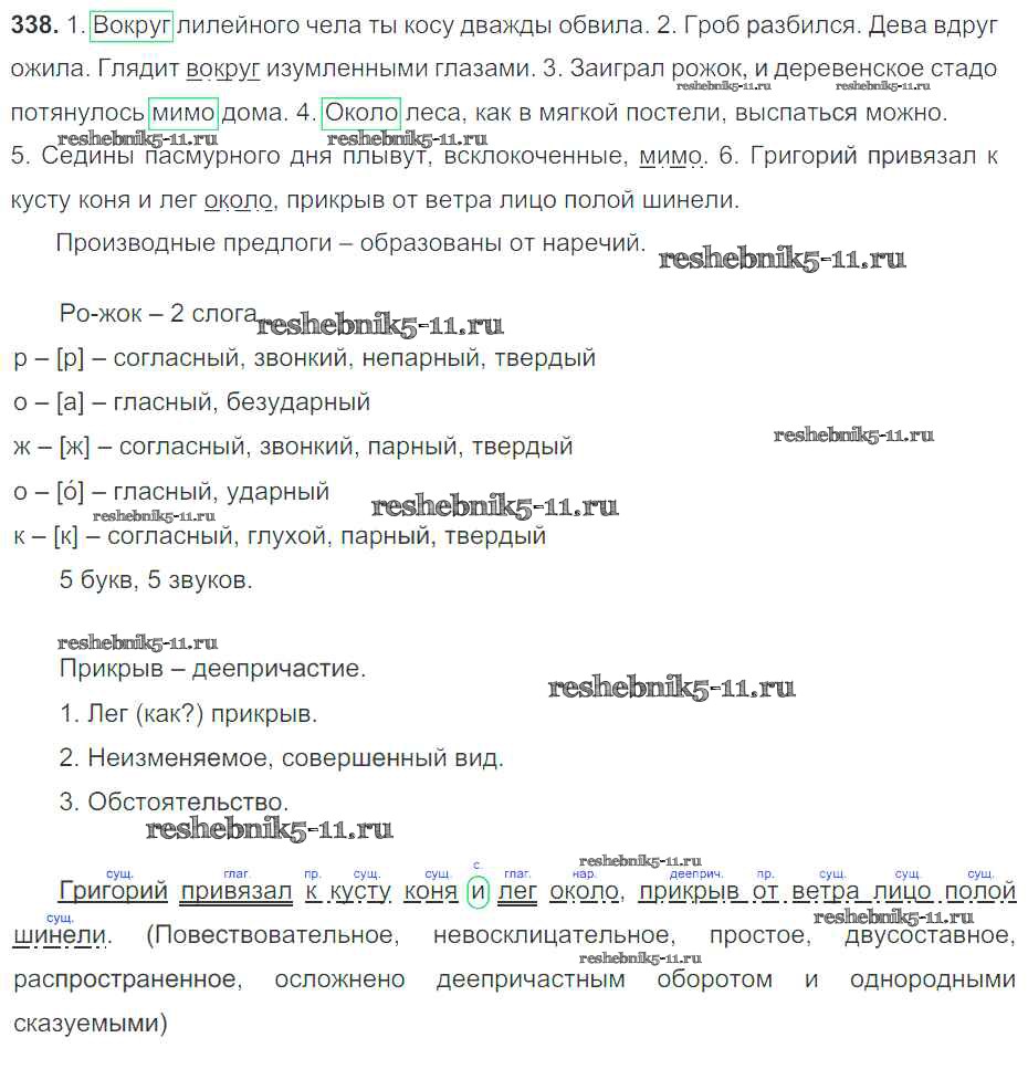Готовая домашняя работа с ответами по Русскому языку за 7 класс Баранов, Ладыженская, Тростенцова Учебник УМК Просвещение 2015 ФГОС - Упражнения 338