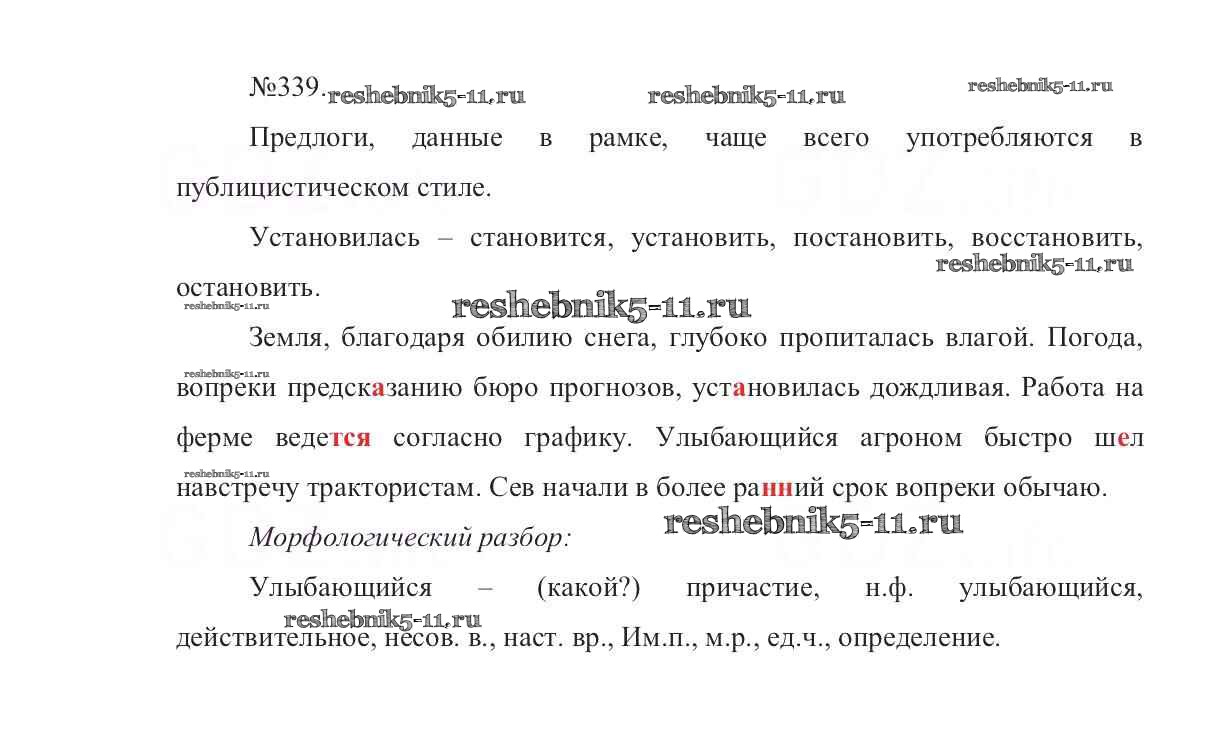 Русский язык за 7 класс Баранов Учебник УМК Просвещение упражнение 339