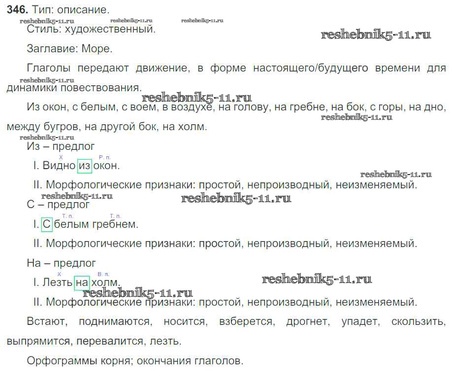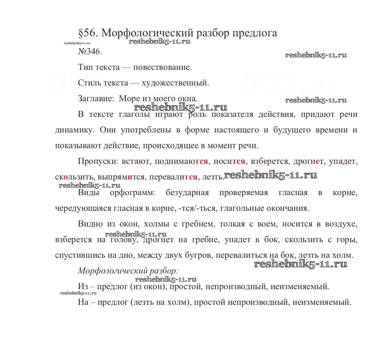 Готовая домашняя работа с ответами по Русскому языку за 7 класс Баранов, Ладыженская, Тростенцова Учебник УМК Просвещение 2015 ФГОС - Упражнения 346