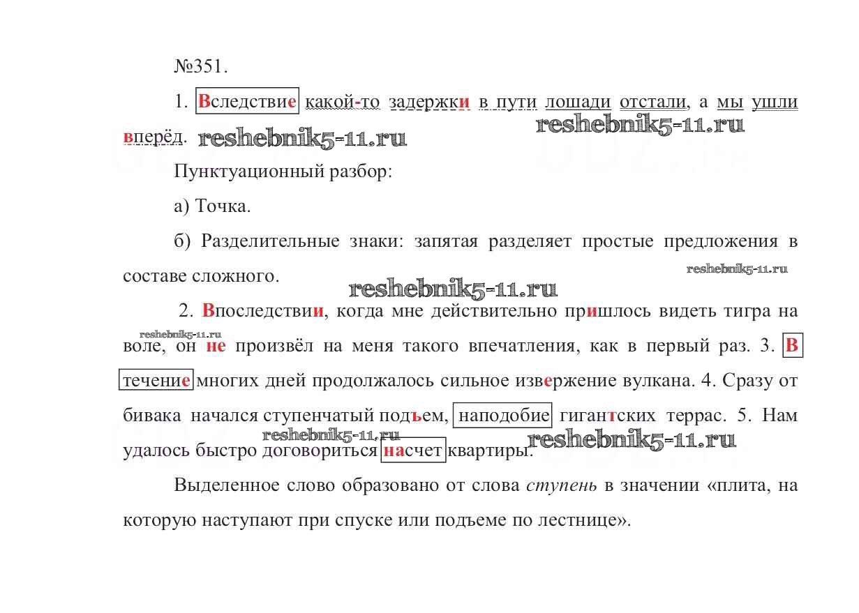 Готовая домашняя работа с ответами по Русскому языку за 7 класс Баранов, Ладыженская, Тростенцова Учебник УМК Просвещение 2015 ФГОС - Упражнения 351