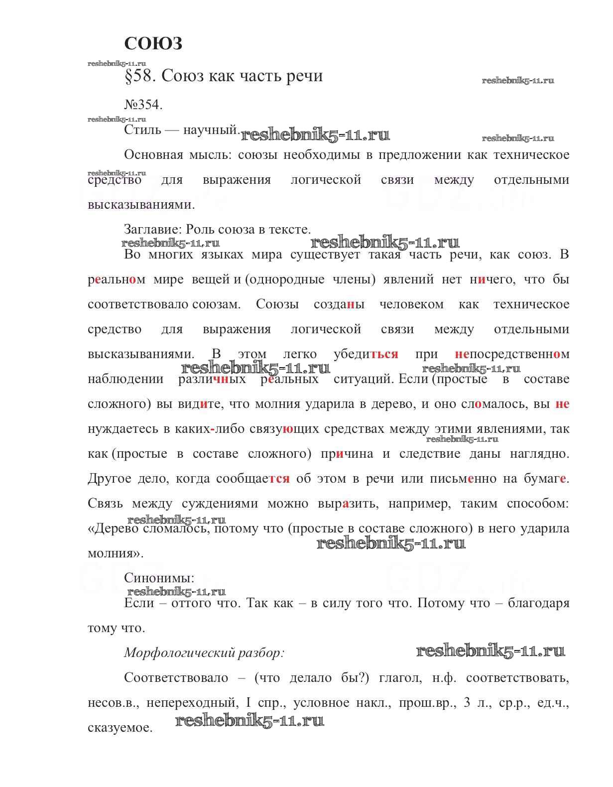 Русский язык за 7 класс Баранов Учебник УМК Просвещение упражнение 354