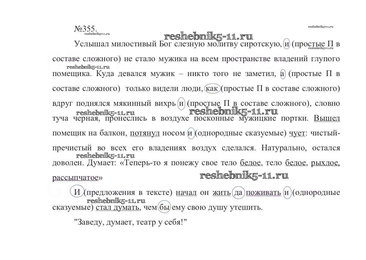 Готовая домашняя работа с ответами по Русскому языку за 7 класс Баранов, Ладыженская, Тростенцова Учебник УМК Просвещение 2015 ФГОС - Упражнения 355