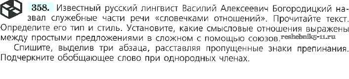 Русский язык за 7 класс Баранов Учебник УМК Просвещение упражнение 358