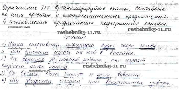 Готовая домашняя работа с ответами по Русскому языку за 7 класс Баранов, Ладыженская, Тростенцова Учебник УМК Просвещение 2015 ФГОС - Упражнения 372