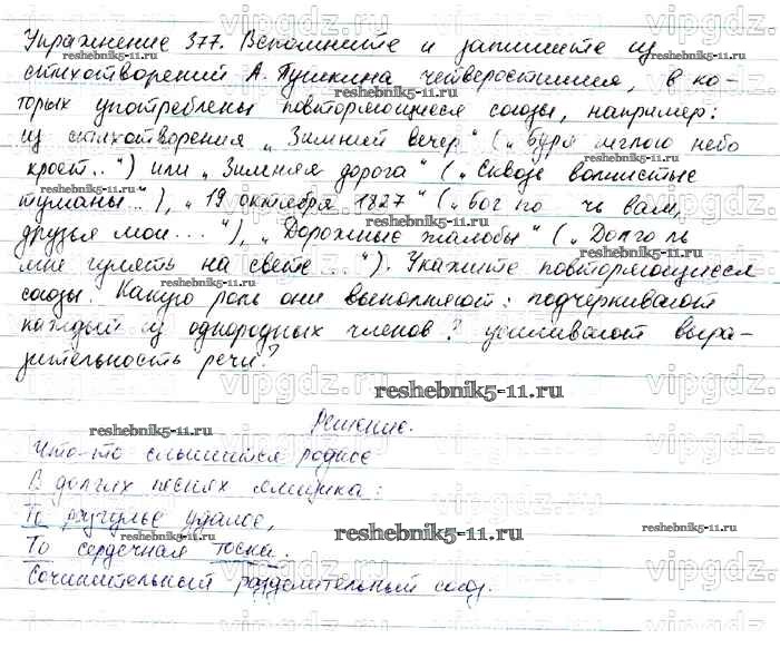 Готовая домашняя работа с ответами по Русскому языку за 7 класс Баранов, Ладыженская, Тростенцова Учебник УМК Просвещение 2015 ФГОС - Упражнения 377