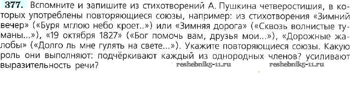 Русский язык за 7 класс Баранов Учебник УМК Просвещение упражнение 377