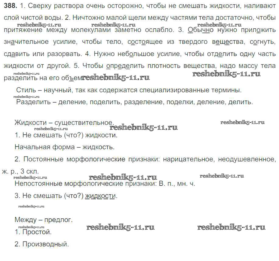 Готовая домашняя работа с ответами по Русскому языку за 7 класс Баранов, Ладыженская, Тростенцова Учебник УМК Просвещение 2015 ФГОС - Упражнения 388