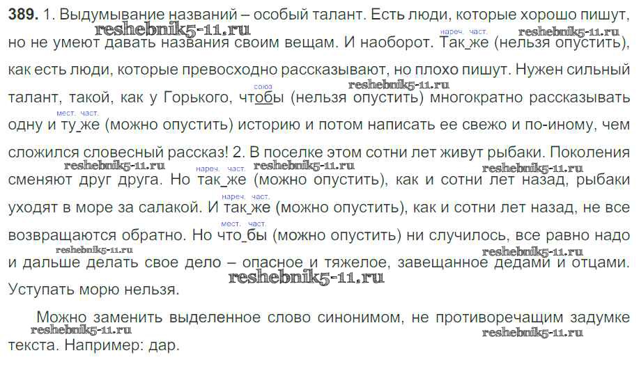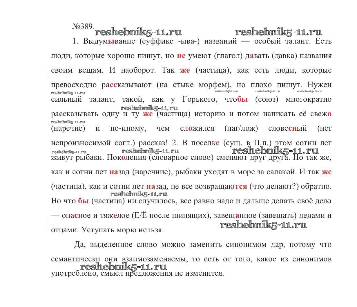 Русский язык за 7 класс Баранов Учебник УМК Просвещение упражнение 389