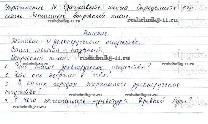 Готовая домашняя работа с ответами по Русскому языку за 7 класс Баранов, Ладыженская, Тростенцова Учебник УМК Просвещение 2015 ФГОС - Упражнения 39