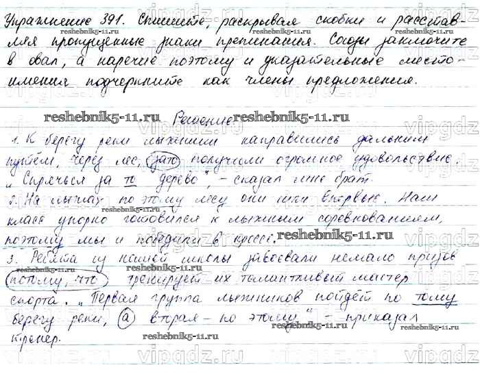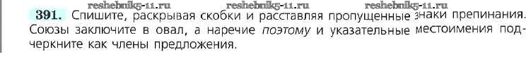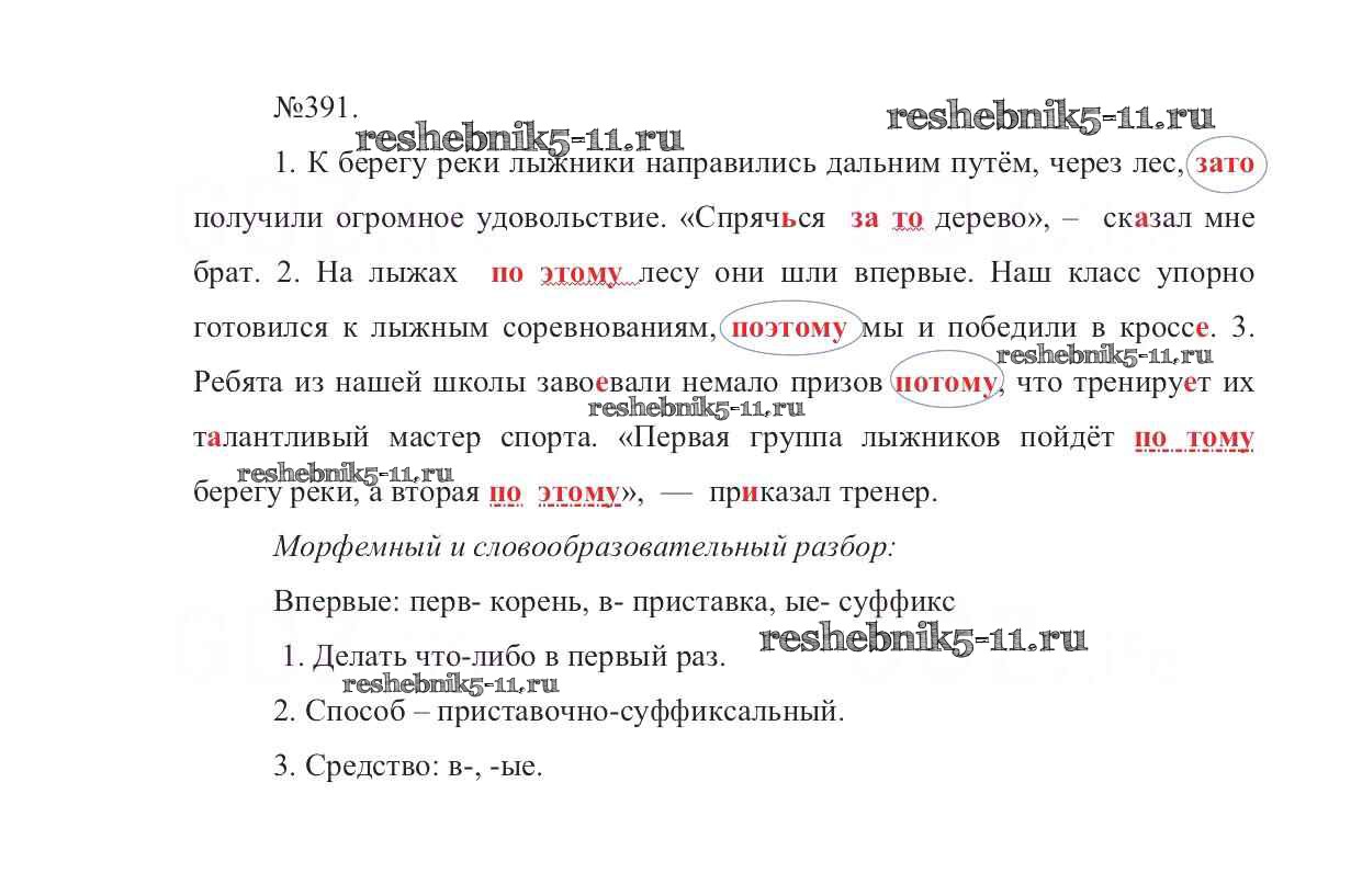 Готовая домашняя работа с ответами по Русскому языку за 7 класс Баранов, Ладыженская, Тростенцова Учебник УМК Просвещение 2015 ФГОС - Упражнения 391
