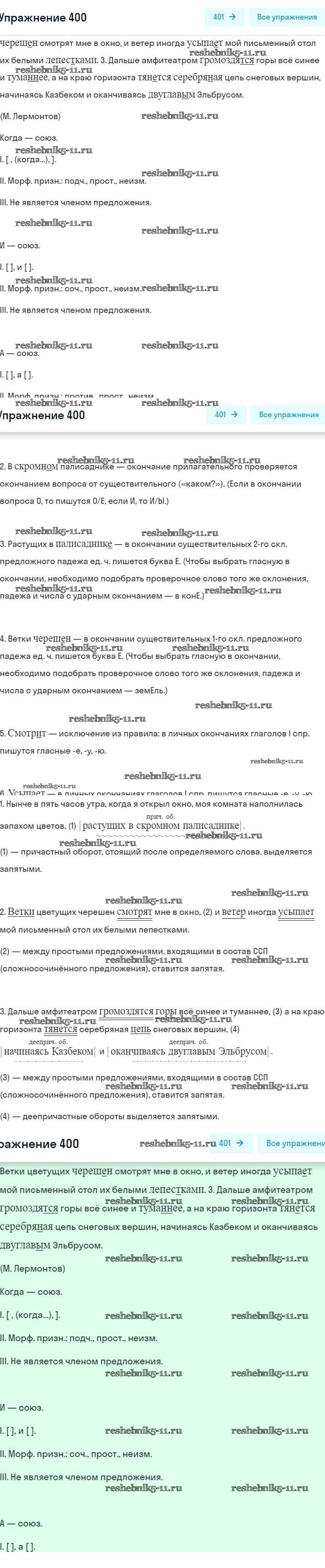 Готовая домашняя работа с ответами по Русскому языку за 7 класс Баранов, Ладыженская, Тростенцова Учебник Просвещение 2015 ФГОС - Упражнения 400