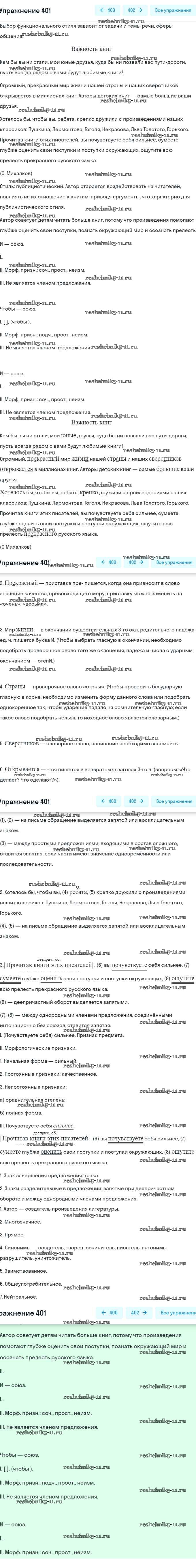 Готовая домашняя работа с ответами по Русскому языку за 7 класс Баранов, Ладыженская, Тростенцова Учебник Просвещение 2015 ФГОС - Упражнения 401