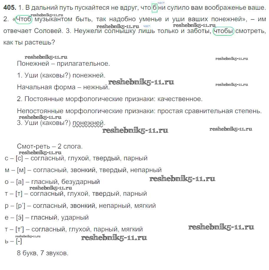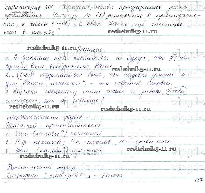 Готовая домашняя работа с ответами по Русскому языку за 7 класс Баранов, Ладыженская, Тростенцова Учебник УМК Просвещение 2015 ФГОС - Упражнения 405