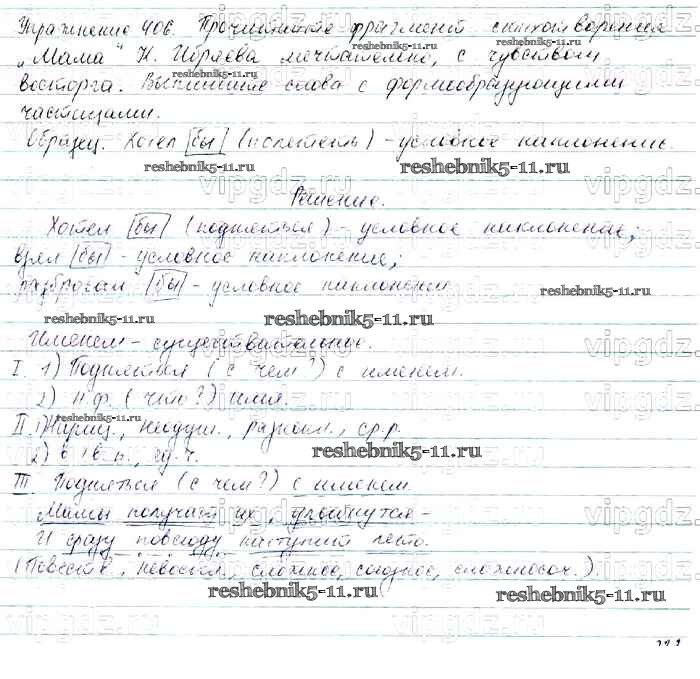 Готовая домашняя работа с ответами по Русскому языку за 7 класс Баранов, Ладыженская, Тростенцова Учебник УМК Просвещение 2015 ФГОС - Упражнения 406