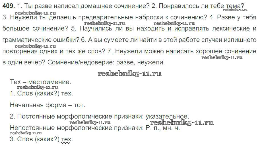 Готовая домашняя работа с ответами по Русскому языку за 7 класс Баранов, Ладыженская, Тростенцова Учебник УМК Просвещение 2015 ФГОС - Упражнения 409