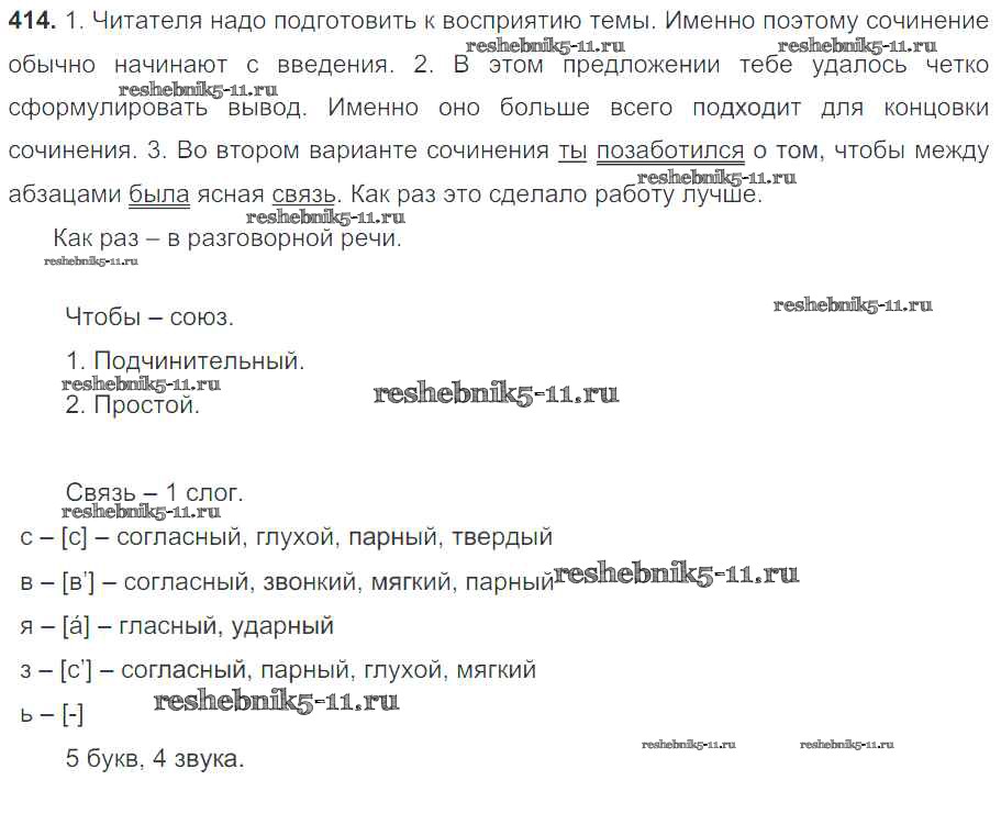 Готовая домашняя работа с ответами по Русскому языку за 7 класс Баранов, Ладыженская, Тростенцова Учебник УМК Просвещение 2015 ФГОС - Упражнения 414
