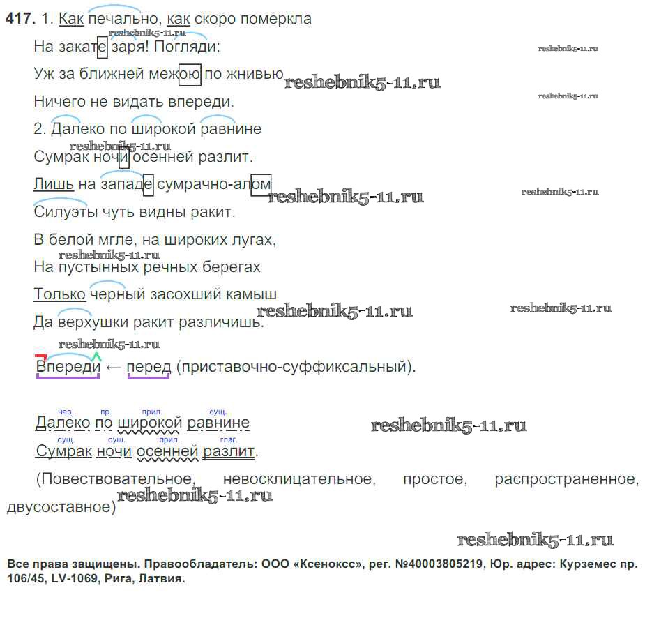 Готовая домашняя работа с ответами по Русскому языку за 7 класс Баранов, Ладыженская, Тростенцова Учебник УМК Просвещение 2015 ФГОС - Упражнения 417