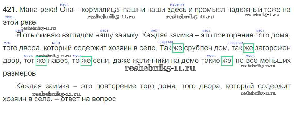 Готовая домашняя работа с ответами по Русскому языку за 7 класс Баранов, Ладыженская, Тростенцова Учебник УМК Просвещение 2015 ФГОС - Упражнения 421