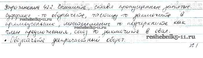 Готовая домашняя работа с ответами по Русскому языку за 7 класс Баранов, Ладыженская, Тростенцова Учебник УМК Просвещение 2015 ФГОС - Упражнения 422
