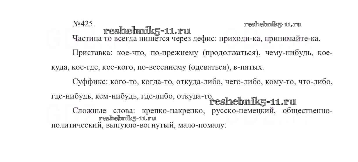 Готовая домашняя работа с ответами по Русскому языку за 7 класс Баранов, Ладыженская, Тростенцова Учебник УМК Просвещение 2015 ФГОС - Упражнения 425