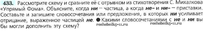 Русский язык за 7 класс Баранов Учебник УМК Просвещение упражнение 433