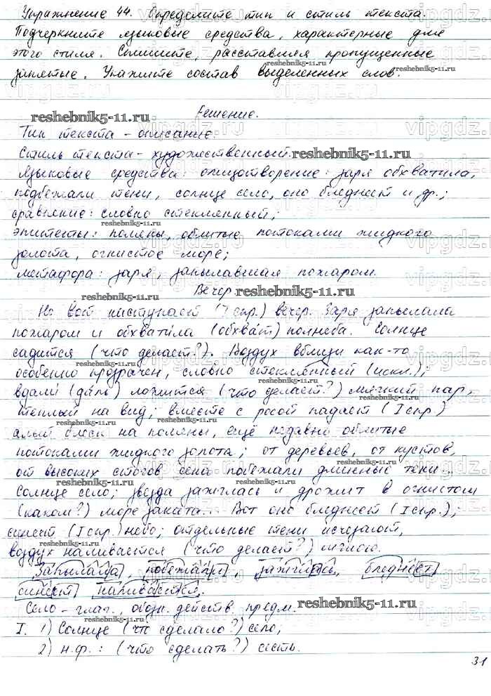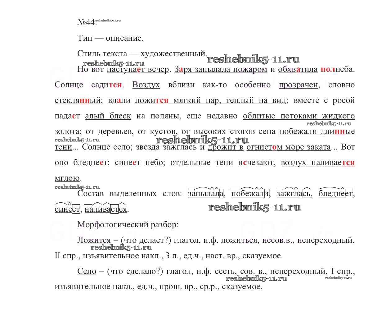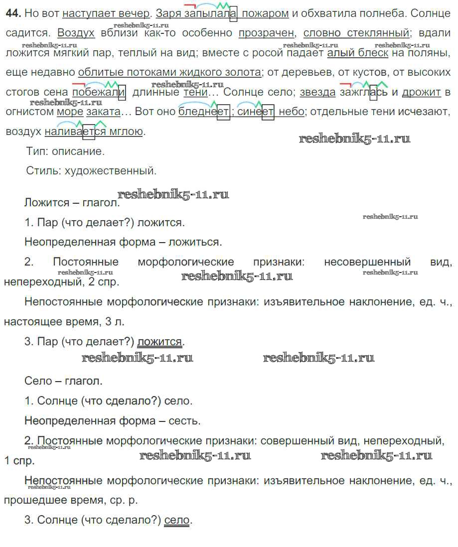 Готовая домашняя работа с ответами по Русскому языку за 7 класс Баранов, Ладыженская, Тростенцова Учебник УМК Просвещение 2015 ФГОС - Упражнения 44