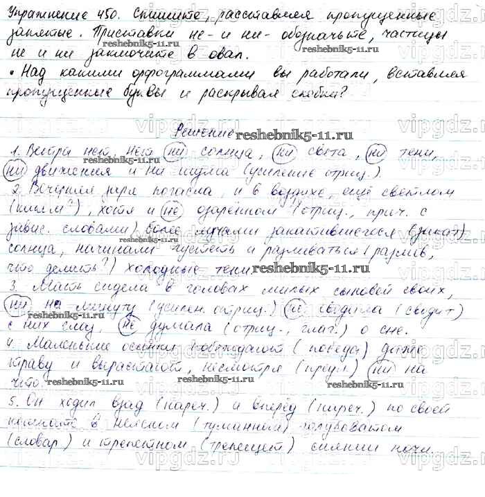 Готовая домашняя работа с ответами по Русскому языку за 7 класс Баранов, Ладыженская, Тростенцова Учебник УМК Просвещение 2015 ФГОС - Упражнения 450