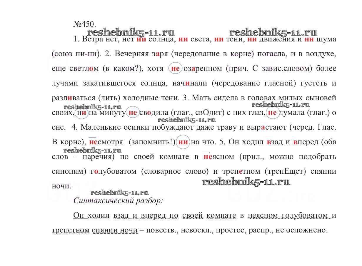 Русский язык за 7 класс Баранов Учебник УМК Просвещение упражнение 450