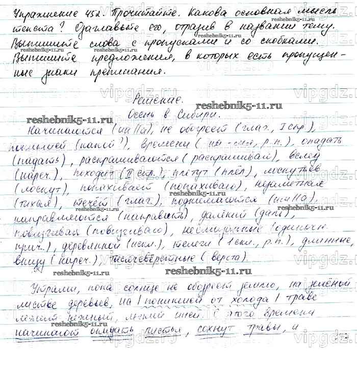 Готовая домашняя работа с ответами по Русскому языку за 7 класс Баранов, Ладыженская, Тростенцова Учебник УМК Просвещение 2015 ФГОС - Упражнения 452
