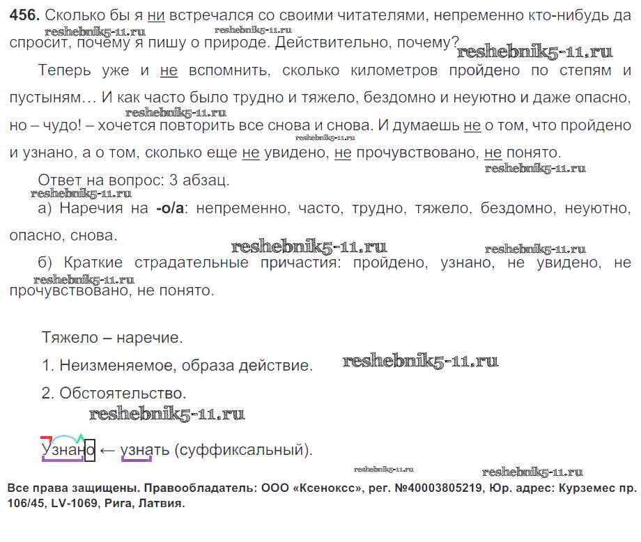 Готовая домашняя работа с ответами по Русскому языку за 7 класс Баранов, Ладыженская, Тростенцова Учебник УМК Просвещение 2015 ФГОС - Упражнения 456