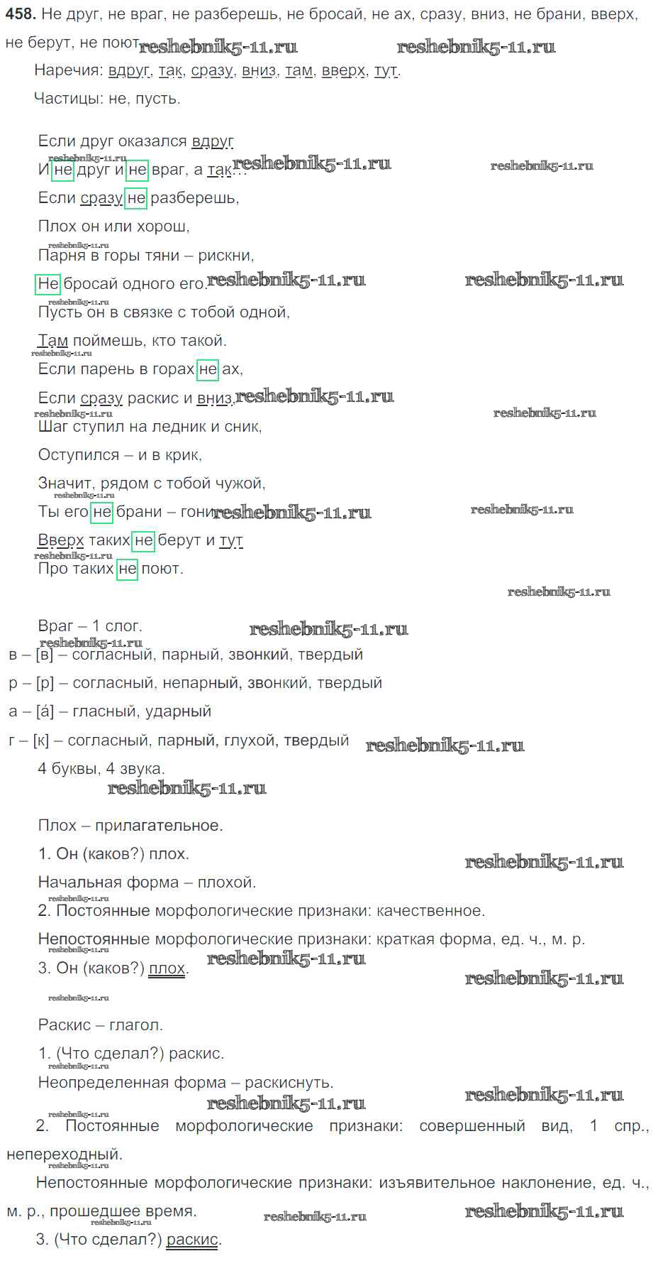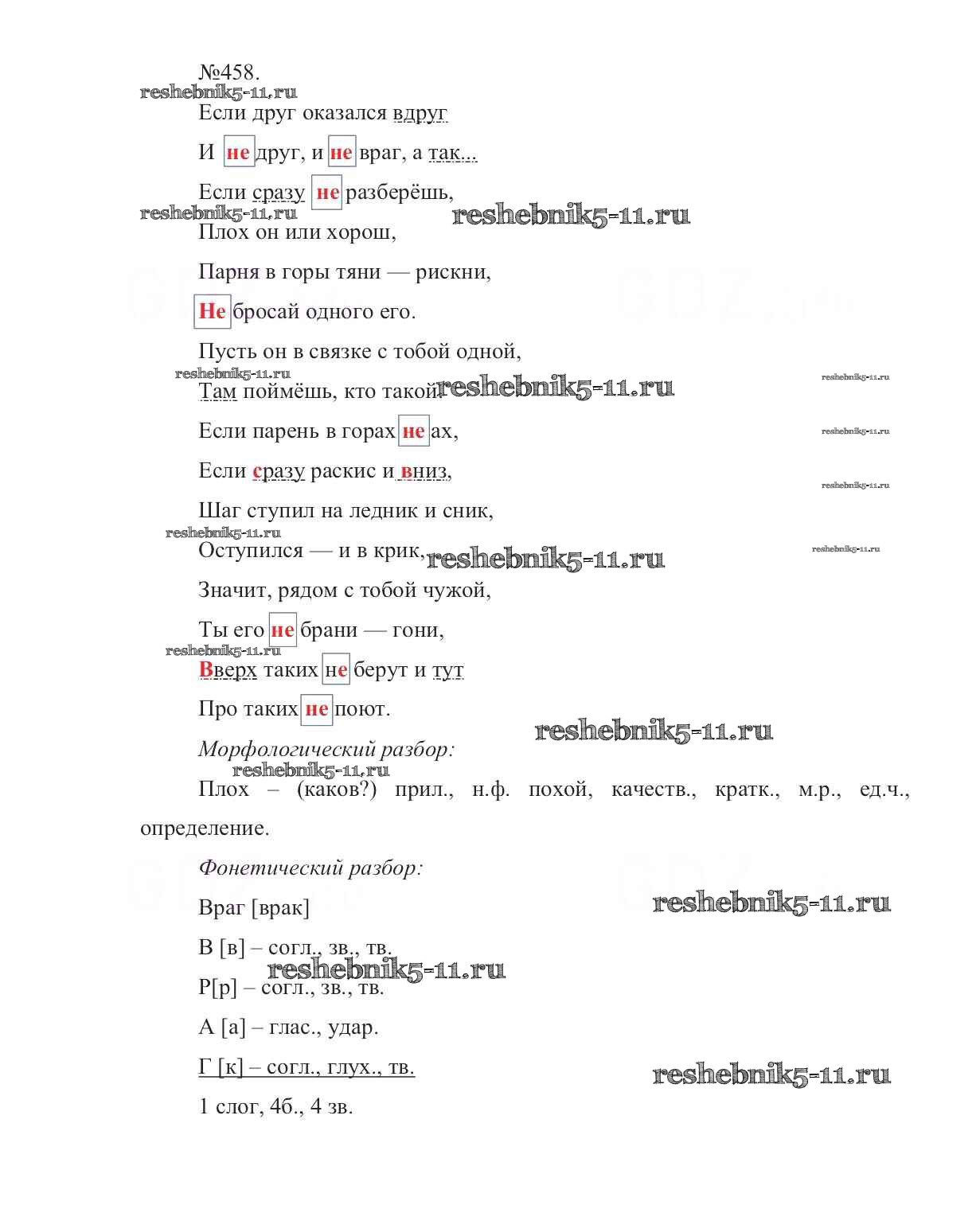 Русский язык за 7 класс Баранов Учебник УМК Просвещение упражнение 458
