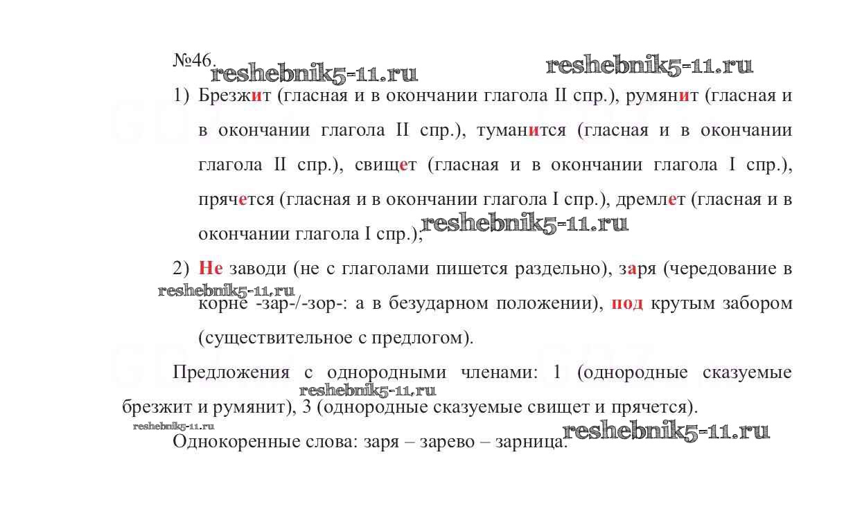 Готовая домашняя работа с ответами по Русскому языку за 7 класс Баранов, Ладыженская, Тростенцова Учебник УМК Просвещение 2015 ФГОС - Упражнения 46