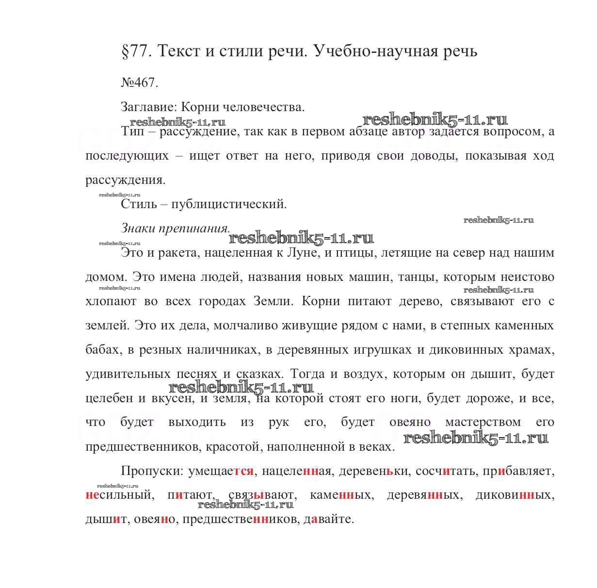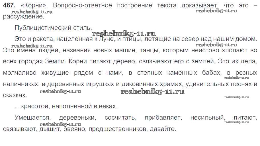 Русский язык за 7 класс Баранов Учебник УМК Просвещение упражнение 467