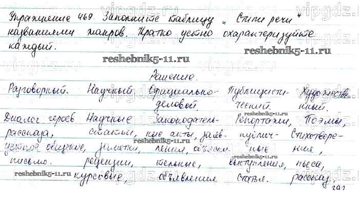 Русский язык за 7 класс Баранов Учебник УМК Просвещение упражнение 469