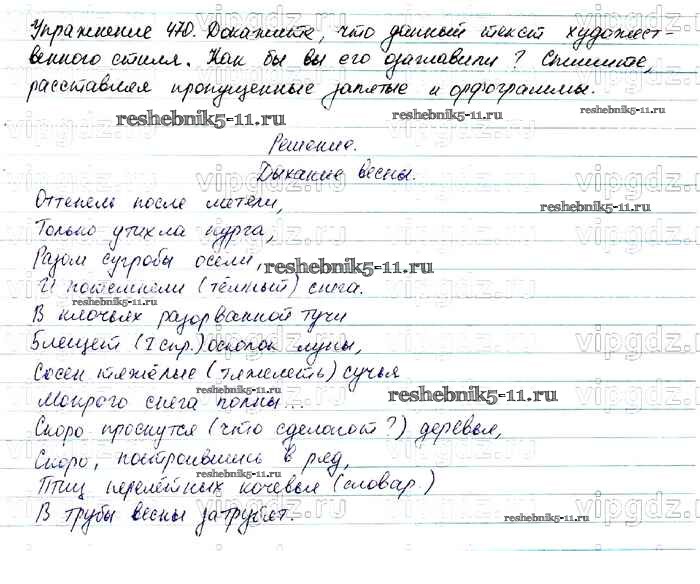 Готовая домашняя работа с ответами по Русскому языку за 7 класс Баранов, Ладыженская, Тростенцова Учебник УМК Просвещение 2015 ФГОС - Упражнения 470