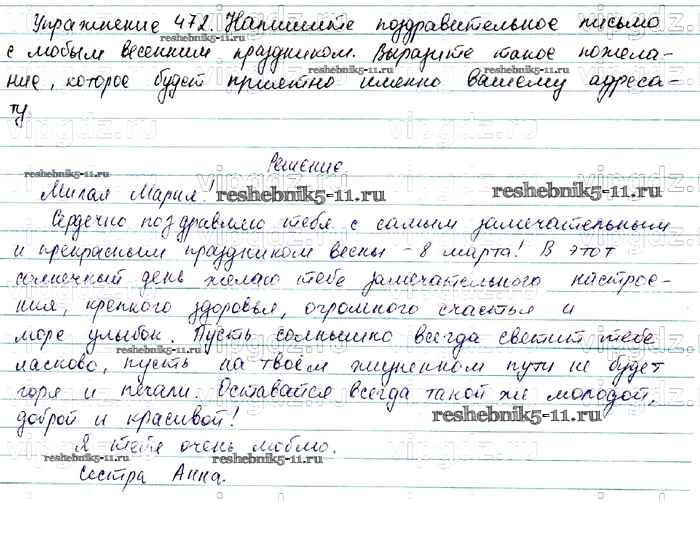 Готовая домашняя работа с ответами по Русскому языку за 7 класс Баранов, Ладыженская, Тростенцова Учебник УМК Просвещение 2015 ФГОС - Упражнения 472