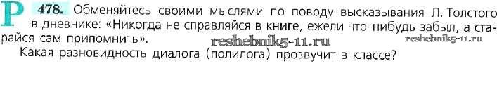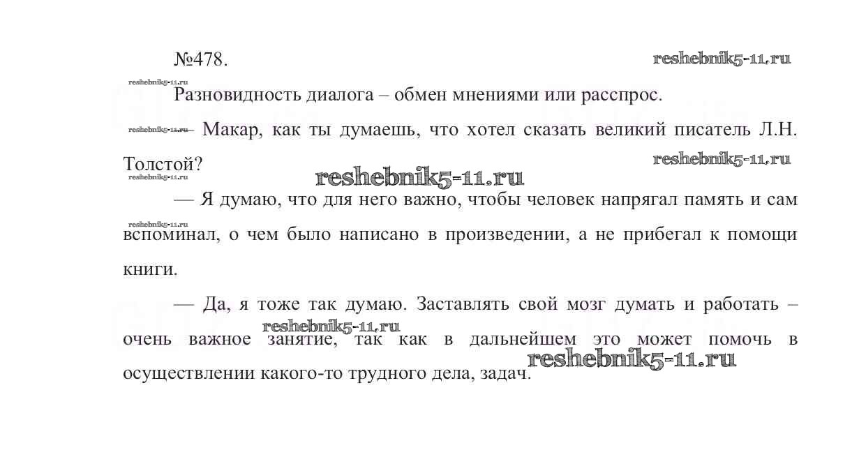 Русский язык за 7 класс Баранов Учебник УМК Просвещение упражнение 478