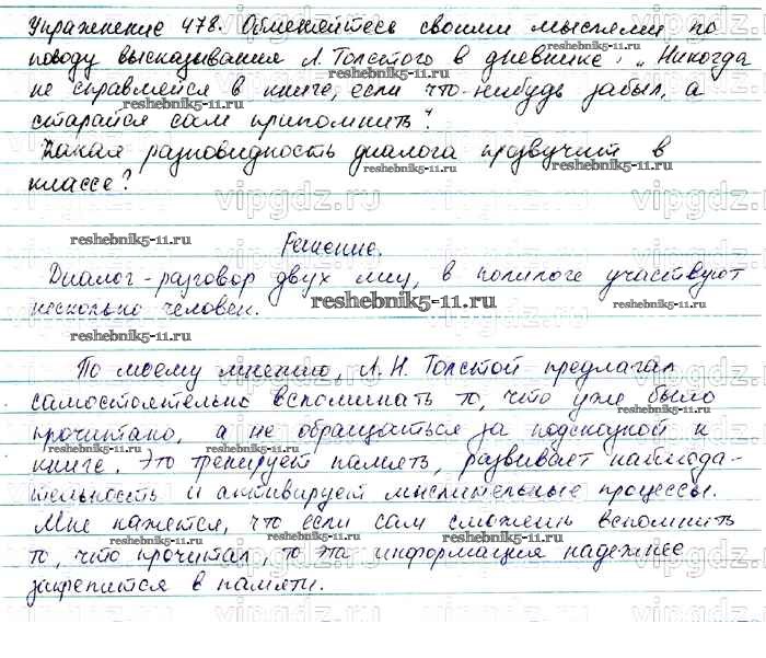 Готовая домашняя работа с ответами по Русскому языку за 7 класс Баранов, Ладыженская, Тростенцова Учебник УМК Просвещение 2015 ФГОС - Упражнения 478