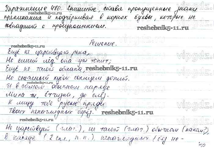 Готовая домашняя работа с ответами по Русскому языку за 7 класс Баранов, Ладыженская, Тростенцова Учебник УМК Просвещение 2015 ФГОС - Упражнения 480