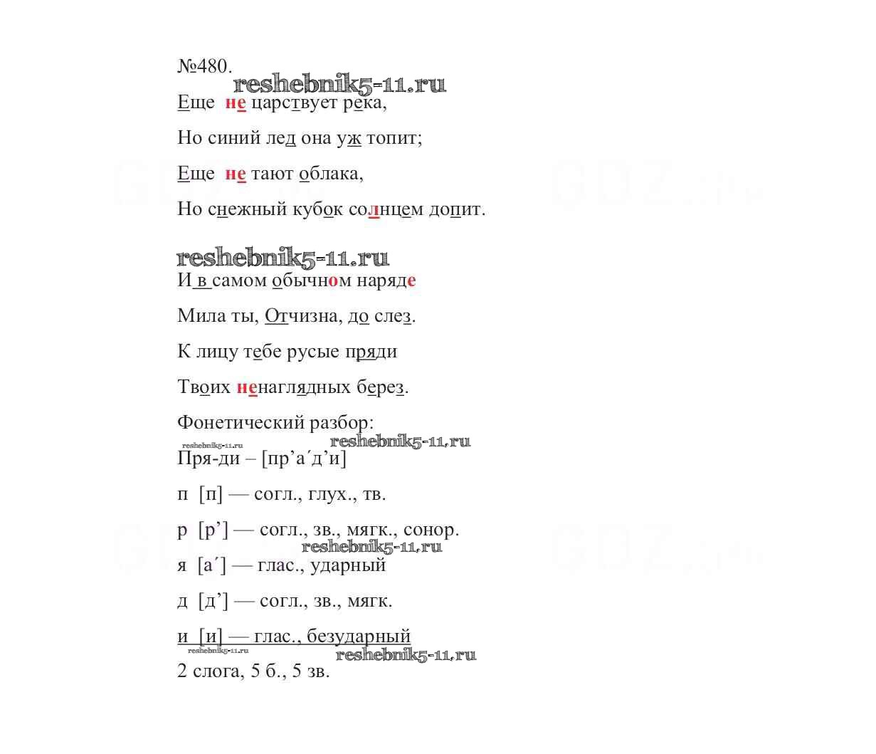 Русский язык за 7 класс Баранов Учебник УМК Просвещение упражнение 480