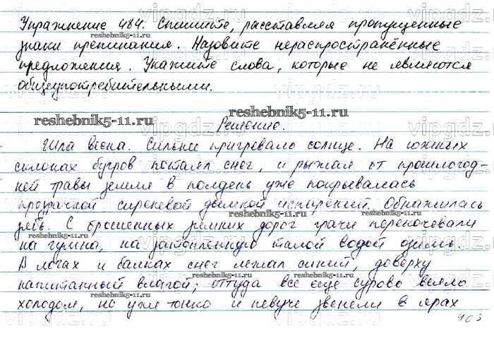 Готовая домашняя работа с ответами по Русскому языку за 7 класс Баранов, Ладыженская, Тростенцова Учебник УМК Просвещение 2015 ФГОС - Упражнения 484