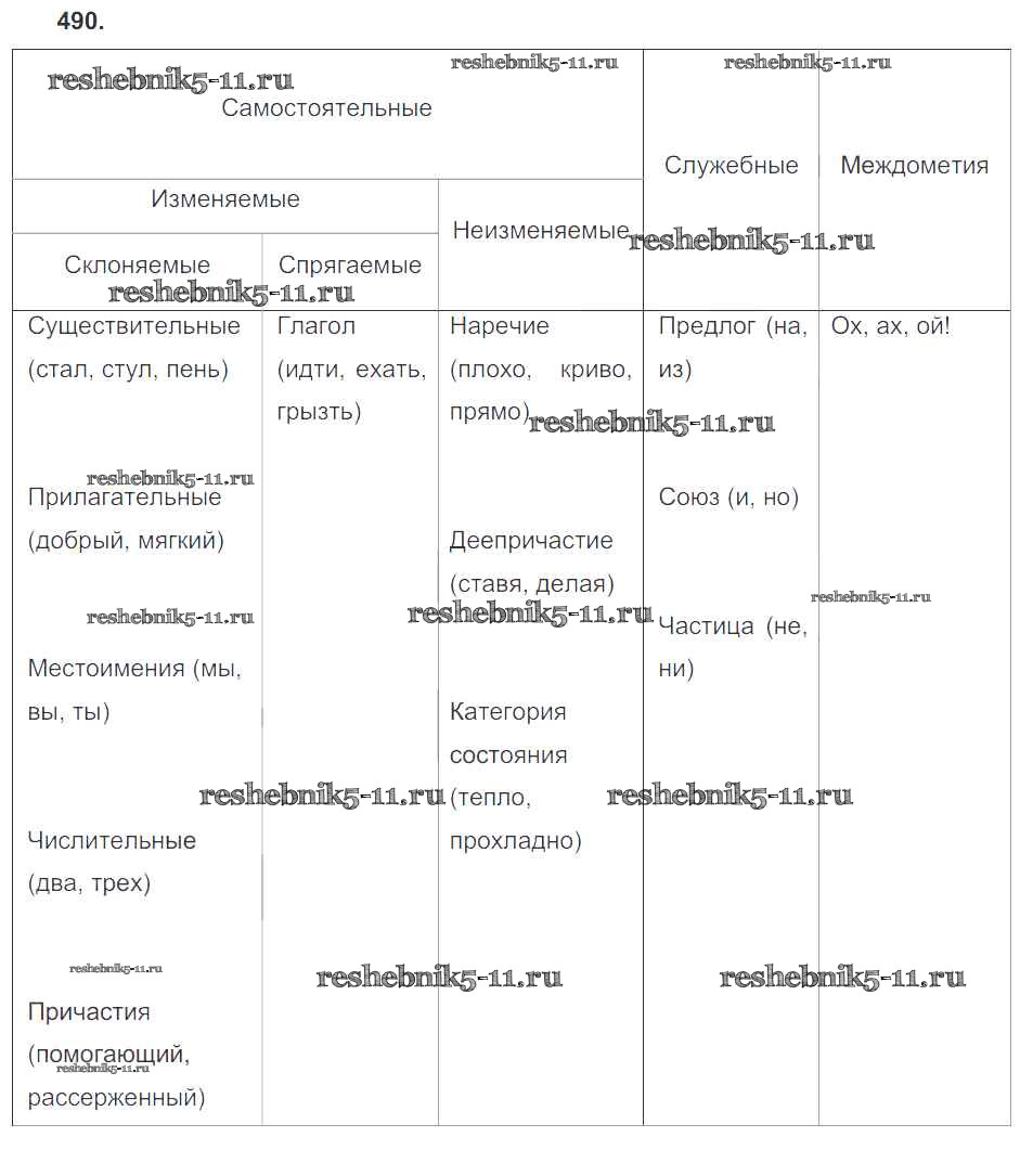 Готовая домашняя работа с ответами по Русскому языку за 7 класс Баранов, Ладыженская, Тростенцова Учебник УМК Просвещение 2015 ФГОС - Упражнения 490