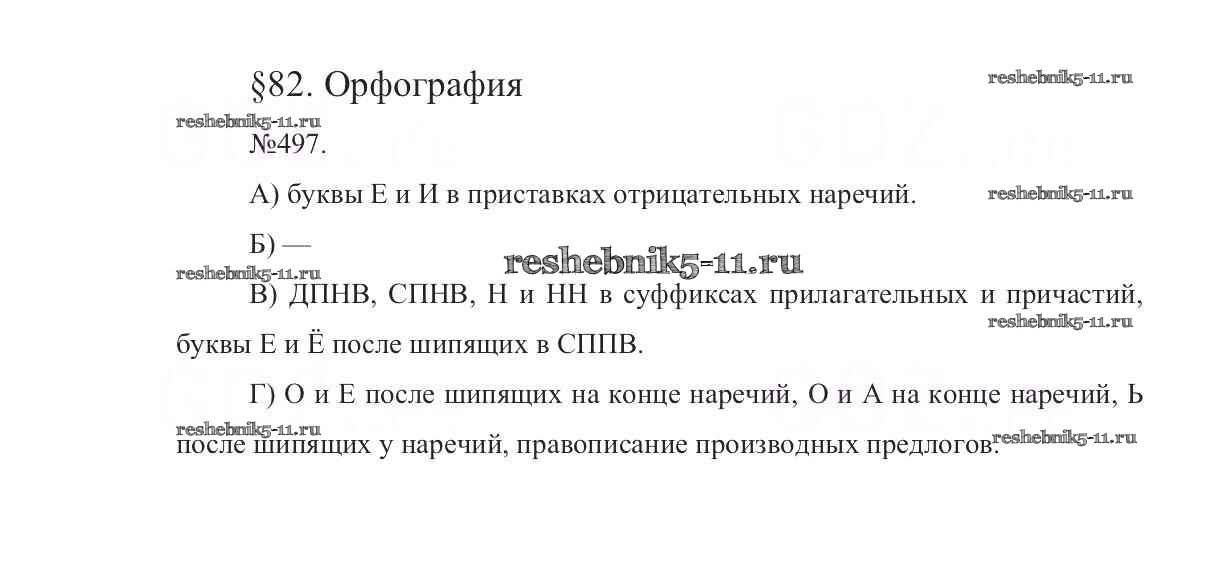 Готовая домашняя работа с ответами по Русскому языку за 7 класс Баранов, Ладыженская, Тростенцова Учебник УМК Просвещение 2015 ФГОС - Упражнения 497