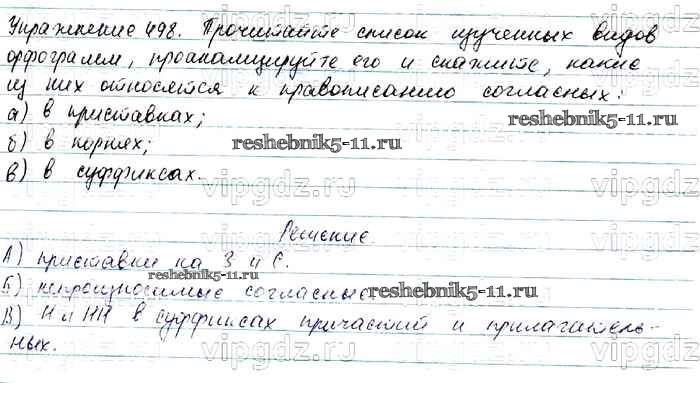 Готовая домашняя работа с ответами по Русскому языку за 7 класс Баранов, Ладыженская, Тростенцова Учебник УМК Просвещение 2015 ФГОС - Упражнения 498