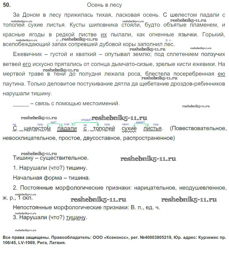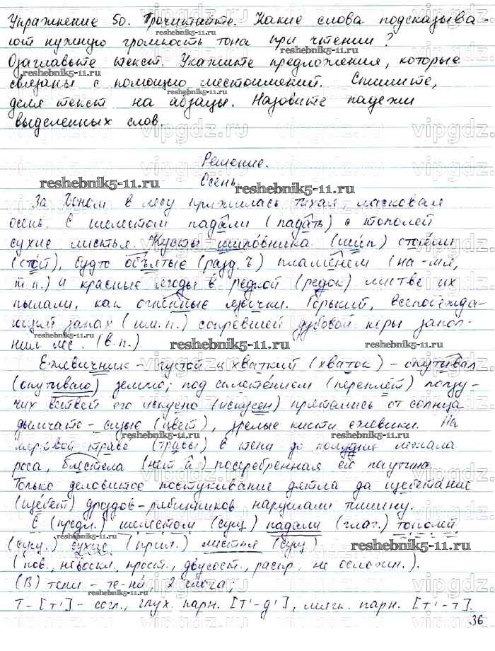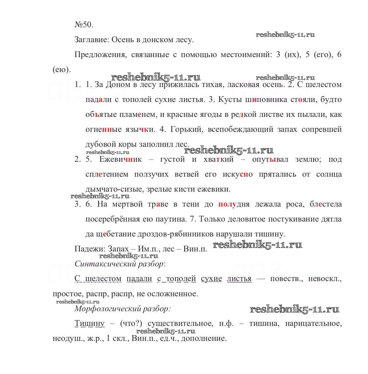 Готовая домашняя работа с ответами по Русскому языку за 7 класс Баранов, Ладыженская, Тростенцова Учебник УМК Просвещение 2015 ФГОС - Упражнения 50