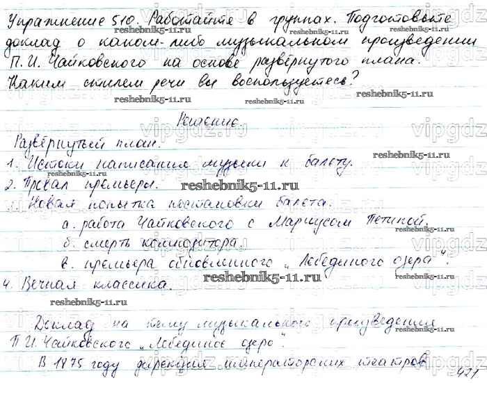 Готовая домашняя работа с ответами по Русскому языку за 7 класс Баранов, Ладыженская, Тростенцова Учебник УМК Просвещение 2015 ФГОС - Упражнения 510